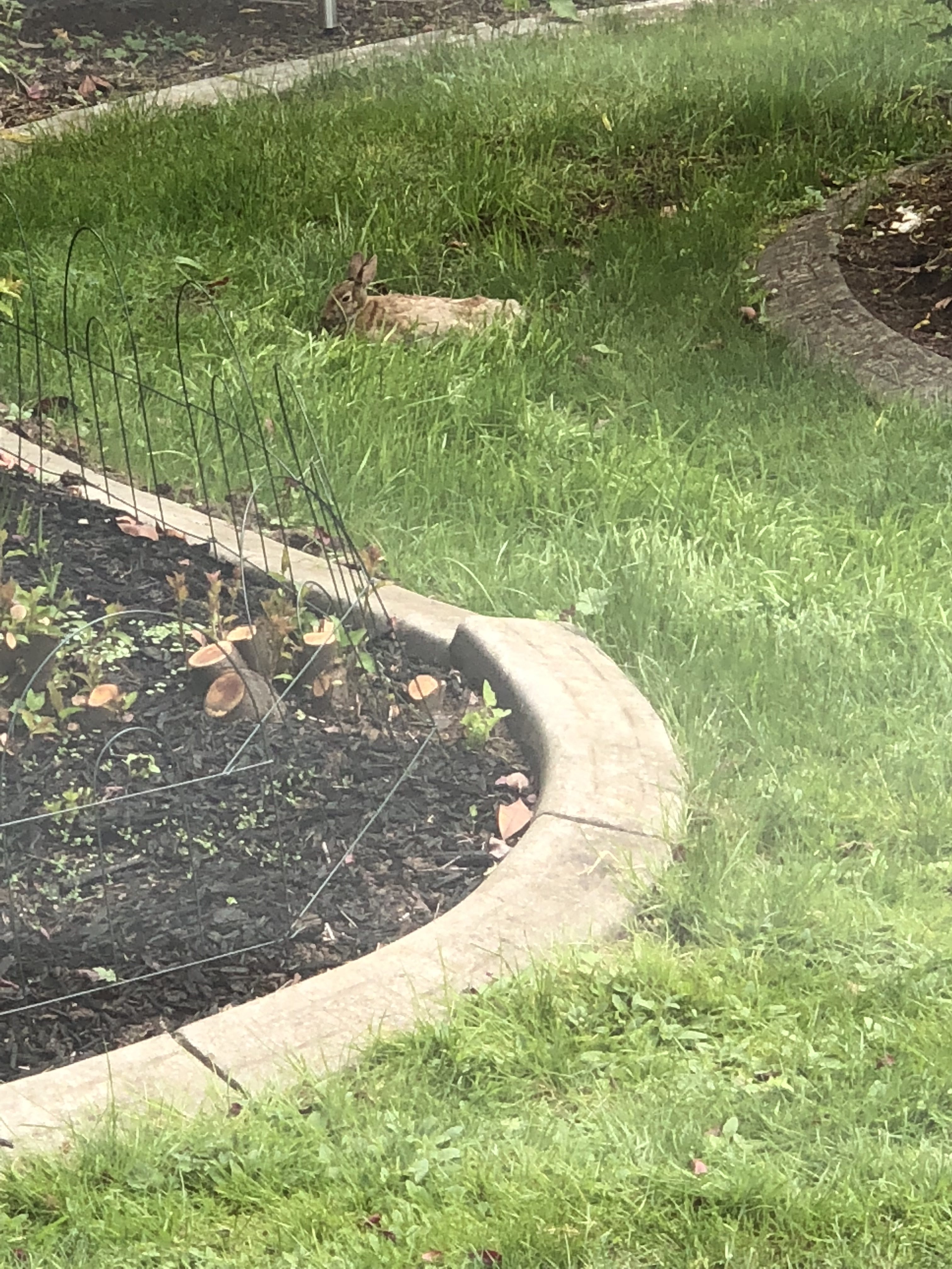 We’ve noticed a bunny living under our plum tree since the weather is getting warmer. It seems like he make himself home in our back yard.